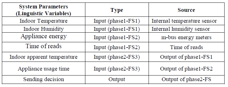 Table 1. The input/output parameters of the proposed fuzzy model.