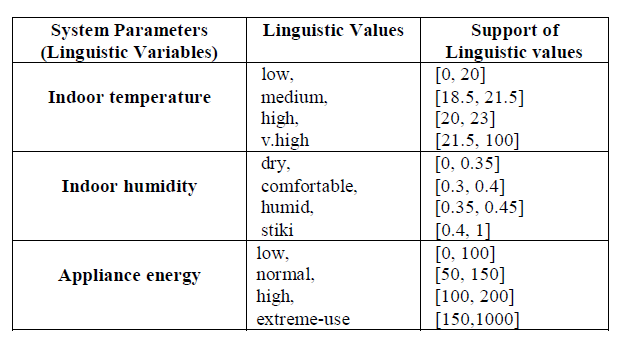 Table 2. Membership functions: Definition of the fuzzy linguistic values of system parameters.