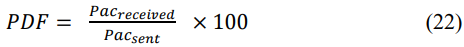 The packet delivery function is one among the network performance metric and is defined as the ratio between the number of the data packet sent and the number of the data packet received. The mathematical expression for packet delivery ratio is given in equation (22).