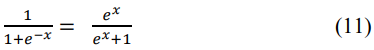 In equation (10), the term 𝑦 denoted the linear equation of the output variables, 𝑥 represented the input variable assigned and 𝜔 𝑇 was involved in the estimation of the weak classifiers in the model. The above equation provides the linear equation relationship between the estimated optimal path of the network. The estimated sigmoidal equation is computed in equation (11)