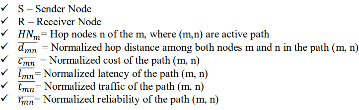 To increase the performance of the RPL protocol in terms of cost, distance, traffic, latency, and network reliability multi-objective function is added to the RPL protocol which leads to the creation of the WOABC (Multi-Objective RPL) routing model. Commonly, the RPL protocol calculates the hop count to select the routing path. This is the best way to find the path and also to provide higher bandwidth with low message drop. Some other parameters are also needed to get considered to develop networks which are sensor node energy, link reliability, and trustworthy routing. Moreover, we have to concentrate on minimizing routing overhead as well as route maintenance. To execute multiple routing in routing protocol WOABC protocol has been developed. The Variables used in this protocol for analysis are given below.