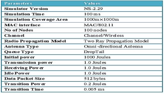 The performance ofthe proposed model is evaluated in NS-2 simulation software. End-to-end delay, packet loss, packet delivery ratio, throughput, energy consumption, and energy efficiency are the parameters taken in to consideration for the analysis. The performance of the proposed Energy Aware Talented Clustering with Compressive Sensing (TCCS) algorithm model is evaluated comparatively evaluated with the existing model such as Compressive sensing-based energy consumption model (CDAS)[22], Energy-Efficient Compressive Sensing-based clustering Routing (EEPC) protocol [23]. Table 2 shows the simulation settings.