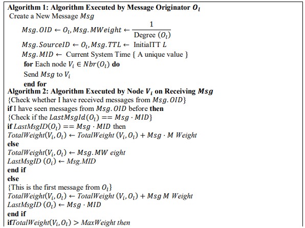The constructed fields SourceID, the MID, and the OID self-explanatory in the tuple. The weighted function is estimated based on the probability to reach the destination node from the source node. The initialized originator node Ol message weights are denoted as 𝑠𝑔.