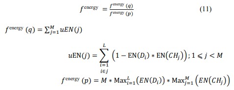 where 𝐸𝑁(𝐷𝑖 ) and 𝐸𝑁(CH𝑗)implies the energy of 𝑖 th the normal node as well as the energy of 𝑗 th the CH, respectively. 𝑓 energy (𝑞), refers to the energy between the CH and the normal node and between the CH and the BS of the network.