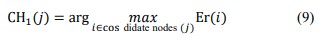 Where, in above equation (9)CH1(𝑗)denoted the jth cluster CH based on the considered first metrics and Er(𝑖) illustrate dthe remaining energy in the ith node those need to be randomly broken. Based on this, the factor considered are remaining energy and distance are presented in equation (10)