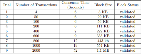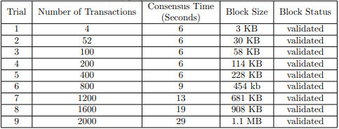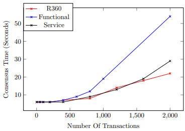 As we can see from Figure 4, the time needed to do consensus increases as the number of transactions goes up. This is understandable because the complexities of our design are O(N2 ), O(NT), and (T 2 ), where N is the number of nodes in the network system, and T is the number of transactions in a block.