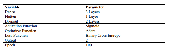 a) DNN is a deep neural network, an evolved class of simple neural networks. Table 1 shows the DNN architecture, the number of layers, and the types of tuning parameters used.
