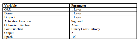 e) GRU is Gated Recurrent Unit is also a type of standard recursive network. The specific architecture and interior design are similar to LSTM. Gated Recurrent Unit is designed to address the vanishing gradient problem in RNN. Table 4 shows the architecture of GRU.