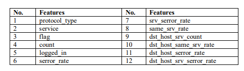 The features are a selection from NSL-KDD Dataset are splitting by 75% for training and 25% for testing. Table 7. Showing partitioning of training and testing data into the NSL-KDD dataset with 12 features.