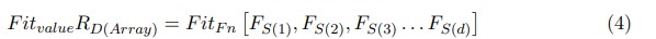 Where, RD(Array) signifies the individual dimensions. Subsequently, the fitness function values are evaluated for every RD which is expressed in Equation (4)