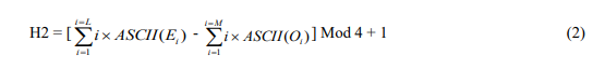 Step 2: The private share of commission’s watermark is concealed within the e-appointment letter in segment-1 based on the hash values H1 and H2, generated form employee Id (E) and order no. (O) respectively, using the following equations.
