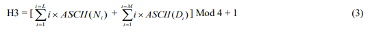 Step 6: Now, the candidate’s fingerprint is taken on-spot and is embedded in segment-2 within the same copy of downloaded e-appointment letter. This is done on the basis of two hash values H3 & H4 generated from name (N) and designation (D) respectively, using the following equations.