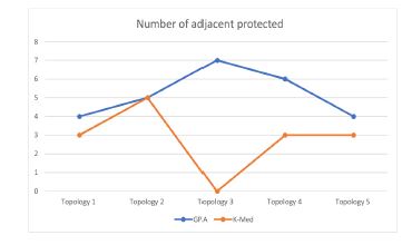 Fig. 10. Number of adjacent protected nodes of the controllers chosen by the two algorithms