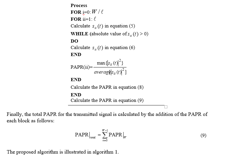 The following steps illustrate the proposed algorithm for PAPR reduction as follows: