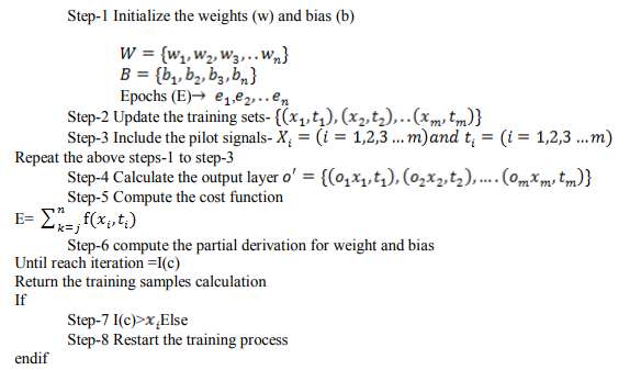 In comparison to traditional CE algorithms, the researchers in [16] presented a deep learning (DL) framework to enhance CE effectiveness and decrease computational costs. The researchers designed a convolutional neural network for MIMO (CNN-MIMO) that takes an incomplete channel matrix as input. The drawback is that it does not affect on either diversity increase or computation cost. The researchers designed a convolutional neural network for MIMO (CNNMIMO) that considers an incomplete channel matrix as input. The drawback is that it has no effect on either diversity or computation cost. In [17], a generative adversarial network (GAN) is built for low-dimensional space using optimal digital and analog precoders. Through conceptualizing multimodal spatial multiplexing like a trans optical solution and instead arranging subsequent loop as a nodule, the investigators were keen to minimize search complexity. As a consequence, a unique model-based DNN with domain expertise is created. The major constraint is that, when the number of mobile terminals to BS antennae ratio is near to each other, it exhibits over CE performance. In [18], a Convolutional Deep Stacking Network (CDSN) is employed to remove the knowledge about the coherence, a rigorous method was provided to rebuild the scarce impulses first from measuring matrices. A deep fully connected neural network was employed in [19]. From the observations, it is inferred that such model is more effective than typical CS modeling techniques. A new LSTM system was proposed in [20], for solving an optimal control problem, and it justifies that the provided process surpasses standard dense overhaul techniques used for the investigation on actual statistics. The backpropagation (BP) approach was presented in [21] for constructing a multicellular feedforward neural network. A deep learning-based approach enabling intuitive channel quality can be estimated & rapid retrieval of broadcast signals were presented in [22]. The authors recommend an approximation message transmission structure for MIMO devices in [23]. This approach dramatically enhances the effectiveness of restoration as well as the reduction trade-off by instantly taking cognizance of spatial information immediately by merging sample covariance in MIMO carriers.