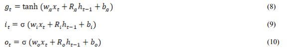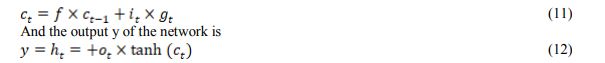 Where , , , denotes the weights matrices for the previous short-term state . , , , are the weight matrices in the current input state , and , , , and are the bias terms. The current long-term state of the network can be calculated as