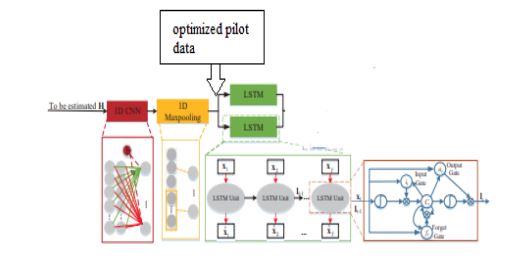 The number of OFDM symbols is used as the time sequence number since the LSTM network requires symbols as input. The data is sent into a 1D CNN network after pre-processing, and feature vectors are retrieved using 1D-CNN. Because the continuous response is directly estimated in time-domain channel estimation, when contrasted to modifications that occur estimate, the source data does have an additional latency element. Channels estimate in the frequency response is not the same as fading channels in the temporal domain, the variables to be estimated are compressed using a 1D Maxpooling layer. The information is moved to the LSTM model post background subtraction & attribute dimensionality minimization, as well as the optimized pilot information, is delivered right to the LSTM model like illustrated in figure 3.