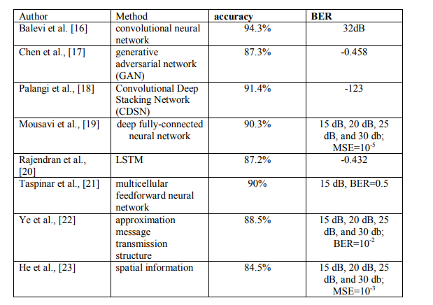 Table 1. comparison between various existing methods