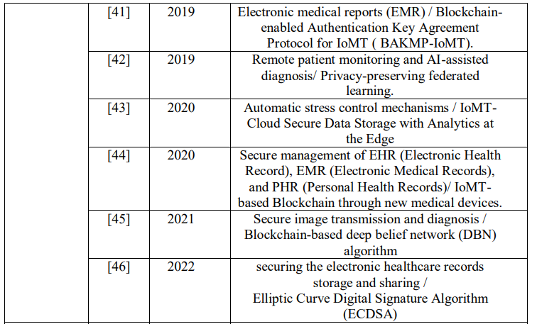 Table 1. Overview of the summarized related work in the IoMT-based Blockchain