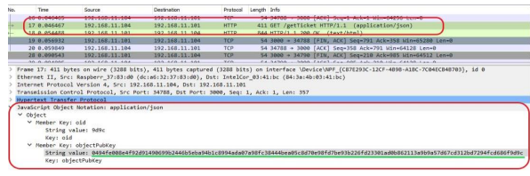 Figure.9 shows the request from a slave device to the master for the purpose of sharing encryption keys. The slave object calls the API endpoint ”keySession” by passing the data in JSON format consisting of a public key (ECDSA) and object ID (oid). The master device responds with a JSON object.