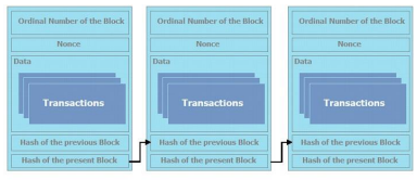 Blockchain is one of the most common and popular kinds of distributed ledger technologies. It is essentially a distributed, decentralized, shared, and the immutable ledger that keeps the information of various transactions that ever happened in a certain peer-to-peer (P2P) network [5]. As shown in figure 2, the group of collected transactions is assigned to a block in the general ledger. Each block has a timestamp and hash function which are used to link the current block to the previous block. This creates chains of blocks, which is why it is called the Blockchain. To store a transaction in this ledger, the majority of nodes in the Blockchain network should record their agreement. Blockchain technology promotes information sharing in which all contributing users/nodes in the blockchain network have a replica of the golden/original ledger so that all users are updated with recently added transactions or blocks [5]. The core components of the Blockchain are: