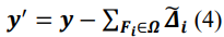 To find the residual AFs, we eliminate the change caused by previous found AFs. Let 𝛀 be the set of previous found AFs. Each flow in 𝛀 corresponds to a four-tuple 〈𝑠𝑛, 𝐹𝑖 , ỹ𝒊 ∗ ,𝚫̃𝑖 〉, where𝑠𝑛 represents the order of flow 𝐹𝑖 being found. ỹ𝒊 ∗ and 𝚫̃𝑖 are best estimate of 𝐲𝑖 ∗ and Δ𝑖 and are calculated in the procedure to find 𝐹𝑖 .(see details in [6]). Then we can construct a new traffic fingerprint𝒚 ′ , getting rid of effects of AFs that have been verified to be anomalous.
