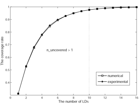 Figure 6. The numerical and experimental coverage rates with respect to the number of LDs