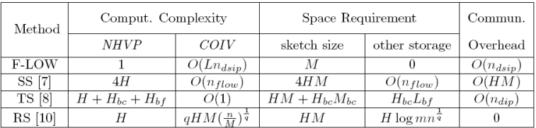 In F-LOW, each collaborative node maintains only one hash table of size M. One of the major differences between our approach with the other three is the way to map packets in a sketch. Our approach uses special designed bitwise-based hash while others use random hash in sketches, which induces completely different method to identify victims. Most COIV of our approach arises from counting DSIPs and comparing every DSIP with the vector B, so the cost increases with the number 𝑛𝑑𝑠𝑖𝑝 of received DSIPs proportionally.