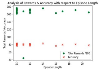 Fig.9 depicts the representation which demonstrates the variation of rewards and accuracy with respect to varying episode lengths. Rewards and accuracy values are highlighted separately in the graph. Bayes theorem will be used to establish independence between the system inputs and model parameters.