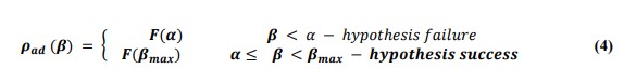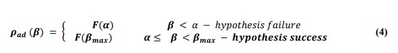 When the posterior trust value is within the range of (0,α), the function ρad(β) is well within the boundary of the hypothesis being rejected i.e; anomaly has not been detected. On the contrary, When the posterior trust value is within the range of (α,βmax), the hypothesis is in acceptable condition indicating that an anomaly has been detected. The algorithm has to now reach the ”termination” condition. It is suitable to use the following function to describe the Posterior Trust and Anomaly probability model for anomaly detection as follows: