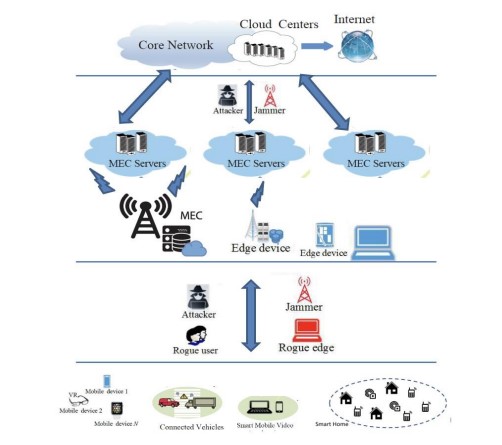 The image in Fig. 1 represents the exposure of edge computing architecture to different network attacks. Various distributed, dispersed, appropriated low latency and dependable astute services alongside DL are ensured by the edge networks. The computational efficiency and edge user experience for time-critical applications improve and localized user experience could be improved significantly with edge computing when they discuss cloud offloading.