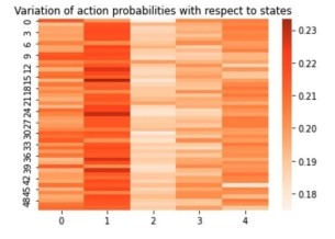 Fig.7 depicts the colour encoded heat map to represent the action probabilities with respect to the states. The policy prediction function uses the Bayesian probability values and computes the action probabilities.