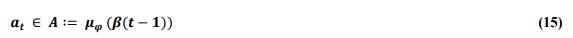 2) Time-indexed DECISION or ACTION variables at in finite action space (A) – The agent takes the decision, an action (a) with the help of a constructive critic and transitions to a new state β(s,a).