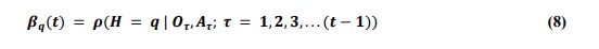 Each of the possible states of the processes are associated with a hypothesis which is proposed by the decision maker. Later, the posterior probabilities are computed based on the hypothesis laid out. Using all the information, the agent forms a posterior trust value β(t) on hypothesis Hqat time (t). The observation information available with the agent at any time (t) is given by: