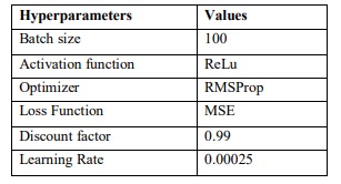 RMS Prop optimizer is used to accelerate the optimization process. The proposed work uses ReLu as the activation function. Table II shows a list of hyperparameters used and their respective values.