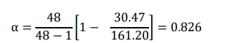 Where n is the number of set of items, ∑i V i is the sum of all sample variances and 𝑉𝑡 is the variance of the total.