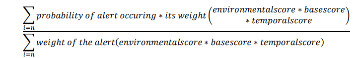 DV=Probability of an alert occurring multiplied by alert weight (base score * environmental score * temporal score) / weight of the alert (base score * temporal score * environmental).