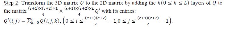 When c=2 and L=2, the size of the matrices Ak(0โคkโค2), B and Ck(1โคkโค2) is 6ร6. It implies that the size of the matrix ๐ is 18ร18ร3.