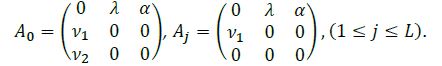 2) The values ๐ (0โค๐โค๐ฟโ1) increase by one unit (the state transition rates from (๐,๐,๐) to (๐โฒ,๐โฒ,๐+1)). The state transition matrices are ๐ต๐ (or ๐ต). The size of ๐ต is the same as that of ๐ด0, ๐ดk and ๐ด๐ฟ. Their non-zero elements are referred hereafter.