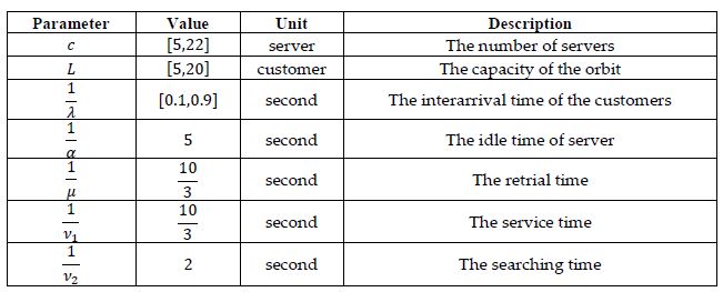 This study proposes an improved model of the single server described above with a limited-size orbit multi-server. Thus, the analytical method utilizes the retrial queueing model ๐/๐/๐/๐ฟ (๐>1,๐ฟ>1) [27] with the aforementioned parameters in which each of the servers is regarded as a single server [1-3, 7].