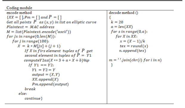 ———-Then call the decodes method in the coding module to convert encoded Pm as point to m (MAC address) to be the greatest integer less than [29]. The client has added to the data to hide it. Although is a public key, only the client knows the value of , making it