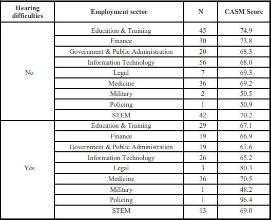 Table 4. Hearing difficulties group mean CASM across employment sectors.