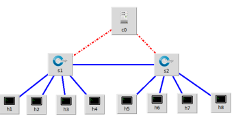 Our simulation was carried out on a Lenovo computer with an Intel® Core™ i5 – 9300H processor operating at 1.2 GHz and 8 GB of DDR4 RAM 2666 MHz, along with Ubuntu 20.04 as operating system. We chose Mininet [29] as a network emulator with a POX controller for simulation purposes. POX [30]is a python based SDN controller which is the improved version of NOX. Compared with other controllers, the usage of POX controllers in detection algorithm is more straightforward and effective. With Mininet, we could create an attack on a virtual server and examine the outcomes of our DDoS attack detection model. Then, we apply our proposed method to detect the DDoS in this model. In this study, we simulated a DDoS attack with 64 hosts and 9 Open vSwitch, with 1 core Open vSwitch and 8 access switches connect to 8 hosts, as illustrated in Figure3