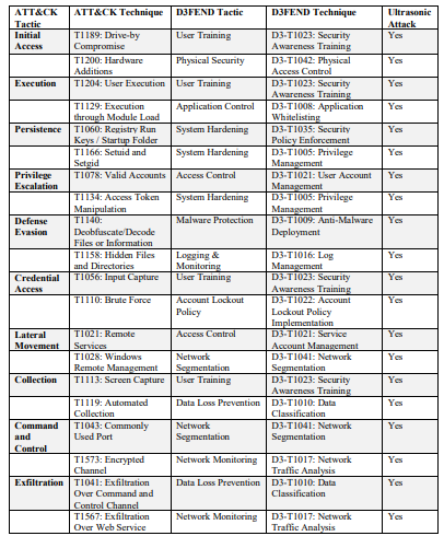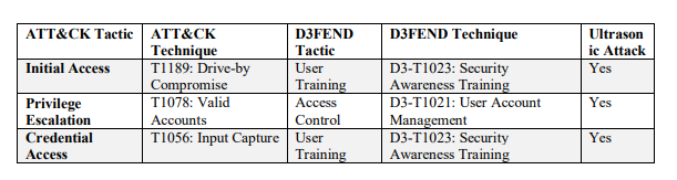 Table 2 Example Near Ultrasonic Attack and the Paired Defend Tactics and Techniques