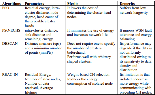To improve on the classic cluster head election procedures, other cluster head election algorithms have been presented. These algorithms, which use artificial intelligence and adaptive data mining frameworks, includes hybrid optimization method for cluster head selection [5], Hybrid Firefly Algorithm with Particle Swarm Optimization [6] and Energy efficient Cluster Head Selection algorithm based on PSO (PSO-ECHS [7]. The algorithms can distinguish and aggregate only the genuine values of the gathered information to the base station, which contributes to the elimination of redundant data and the reduction of power usage, thereby increasing the network lifespan of wireless sensor networks[8]. According to [7-11], [16] they stated that “although these algorithms are better than traditional algorithms they still have limitations including low network lifespan, high energy wastage, lack of adaption with heterogeneous networks, poor stability, node death, transmission delay, complexity in handling large-scale WSNs, inadequate consideration of remaining energy nodes, additional overhead and energy coverage, and unbalanced lifetime of nodes”.