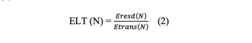 The ELT of a node N, ELT (N), is computed as the proportion of a node’s remaining energy or residual energy, Eresd(N), to the energy used to transmit the traffic to and from it, Etrans(N), as given in Equation (2).