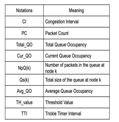 1) Queue Occupancy metric (QO) for Congestion Detection: Queue Occupancy factor measures how many packets are in a node’s queue in relation to the size of the overall queue as given in Equation 1. QO is a node metric that reflects a node’s buffer occupancy rate. The QO metric is used to measure the node-level congestion in a network and is selected for the purpose of identifying and disseminating information concerning congestion. It accurately portrays the current state of congestion at each node.