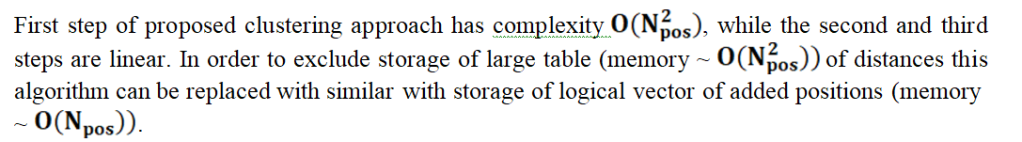 When required database is ready for the use the most complexity is related to accurate AoA estimation. Calculation of spatial probability density is done in parallel as well as selection of position candidates. Clustering complexity is closely related to the latter. As a rule, all this requires 10-1000 times fewer basic operations.