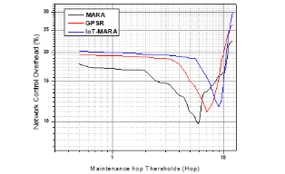 Figure 8. The different hop thresholds for ubiquitous network vs control overhead