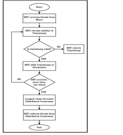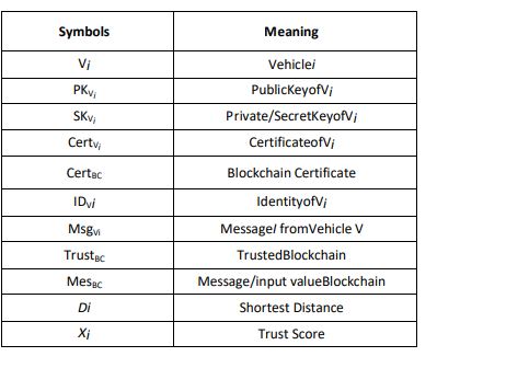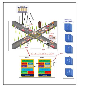 The essential component of our suggested system is the consortium decentralized system[Consortium Blockchain]. The networks that take part in the consensus on a decentralizednetwork are pre-authorized and they decide how each block is generated. RSU is a pre-authorizedcomponent in this architecture. The ability to add data to the blockchain and take part inconsensus is conferred to RSU. Here, we consider a lightweight vehicle node that may access thedata replicated on the RSU. The RSU’s local storage oversees gathering information sharedthrough other RSUs in addition to data contributed by V2V communication. The issue of mutualunderstanding between both the system’s components is resolved by the consensus algorithm.